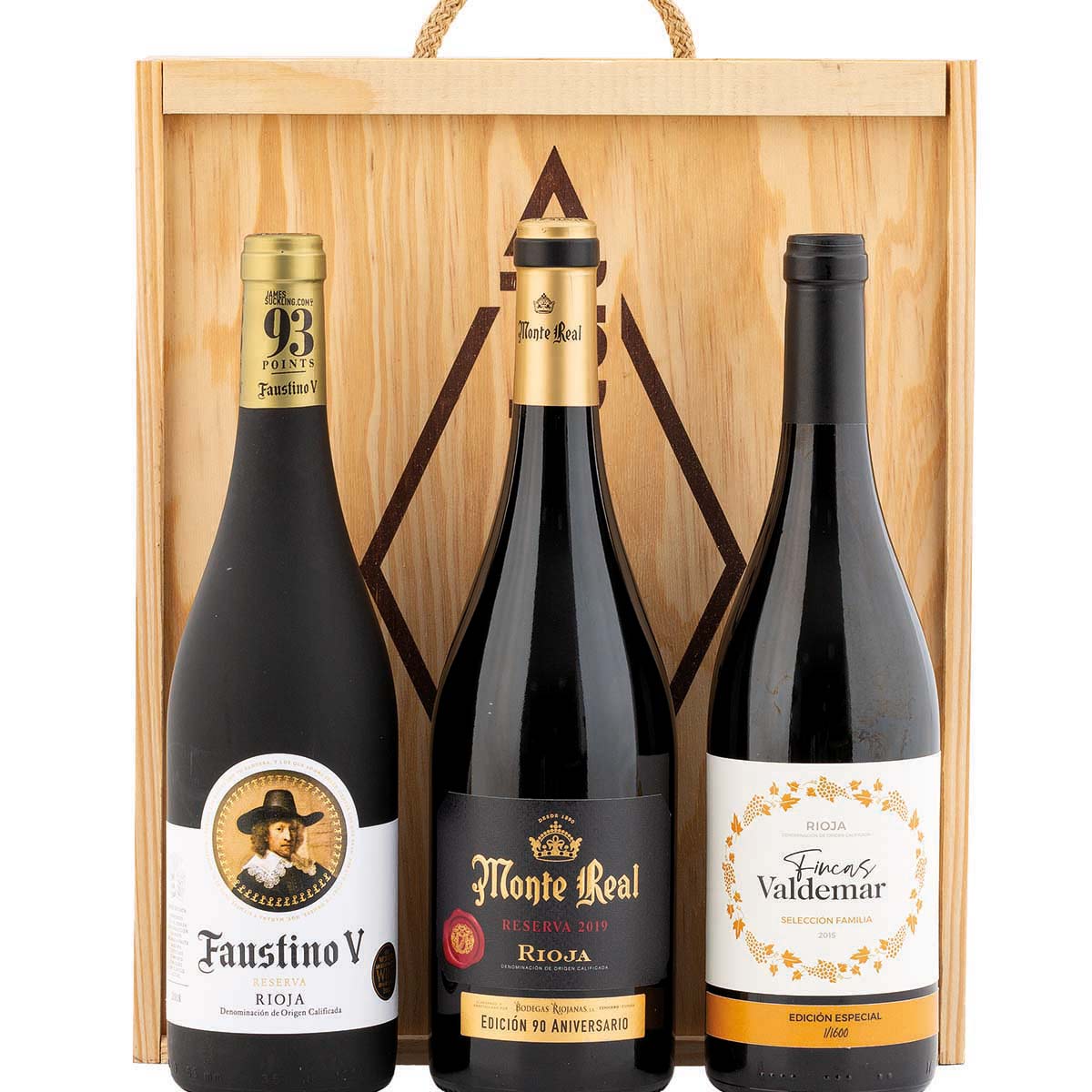 Botella 75 cl. Vino Ribera del Duero Tinto Reserva «Finca La Mira» TAMARAL ( 1 ud )Botella 75 cl. Vino Tinto de Pago Dominio de Valdepusa «Colección Privada» MARQUES DE GRIÑON ( 1 ud )Botella 75 cl. Vino Rioja Tinto Reserva MARQUÉS DE RISCAL ( 1 ud )Caja de Madera ( 1 ud )