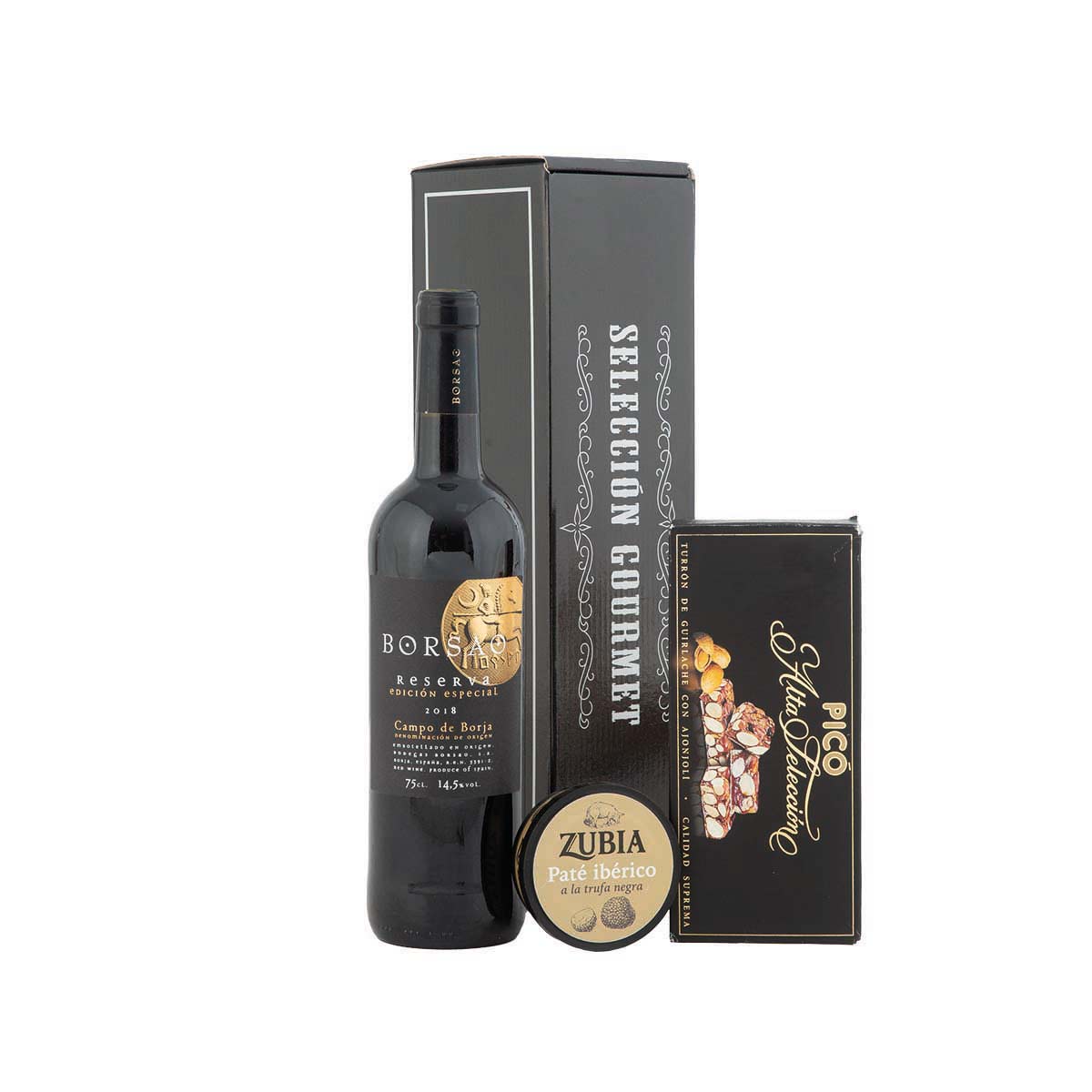 Availability: In StockBotella 75 cl. Vino D.O. Rioja Tinto Reserva FAUSTINO V ( 1 ud )Tableta 100 gr. Chocolate Negro con Flor de Sal PANCRACIO ( 1 ud )Estuche de Lujo ( 1 ud )